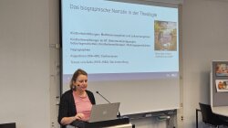 In ihrem Vortrag vom Mi 26.11.2025 sprach Dr. Nadja Waibel über die Chancen und Grenzen biografischer Zugänge in der Theologie. Im Mittelpunkt standen dabei Fragen nach der Rolle des individuellen Erlebens sowie der eigenen Lebensgeschichte im theologischen Studium. In der anschließenden Diskussion wurde deutlich, wie vielfältig die Perspektiven auf das Zusammenspiel von persönlicher Biografie und wissenschaftlicher Reflexion sind. Über alle Statusgruppen hinweg entwickelte sich ein lebhafter Austausch über die Bedeutung biografischer Erfahrungen für die theologische Ausbildung.